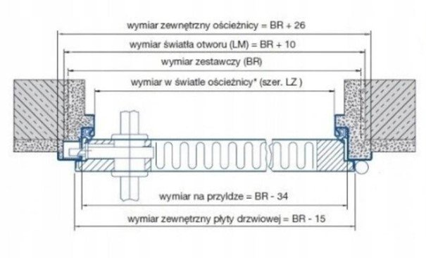 - Grubość blachy ościeżnicy: 1,5 mm,